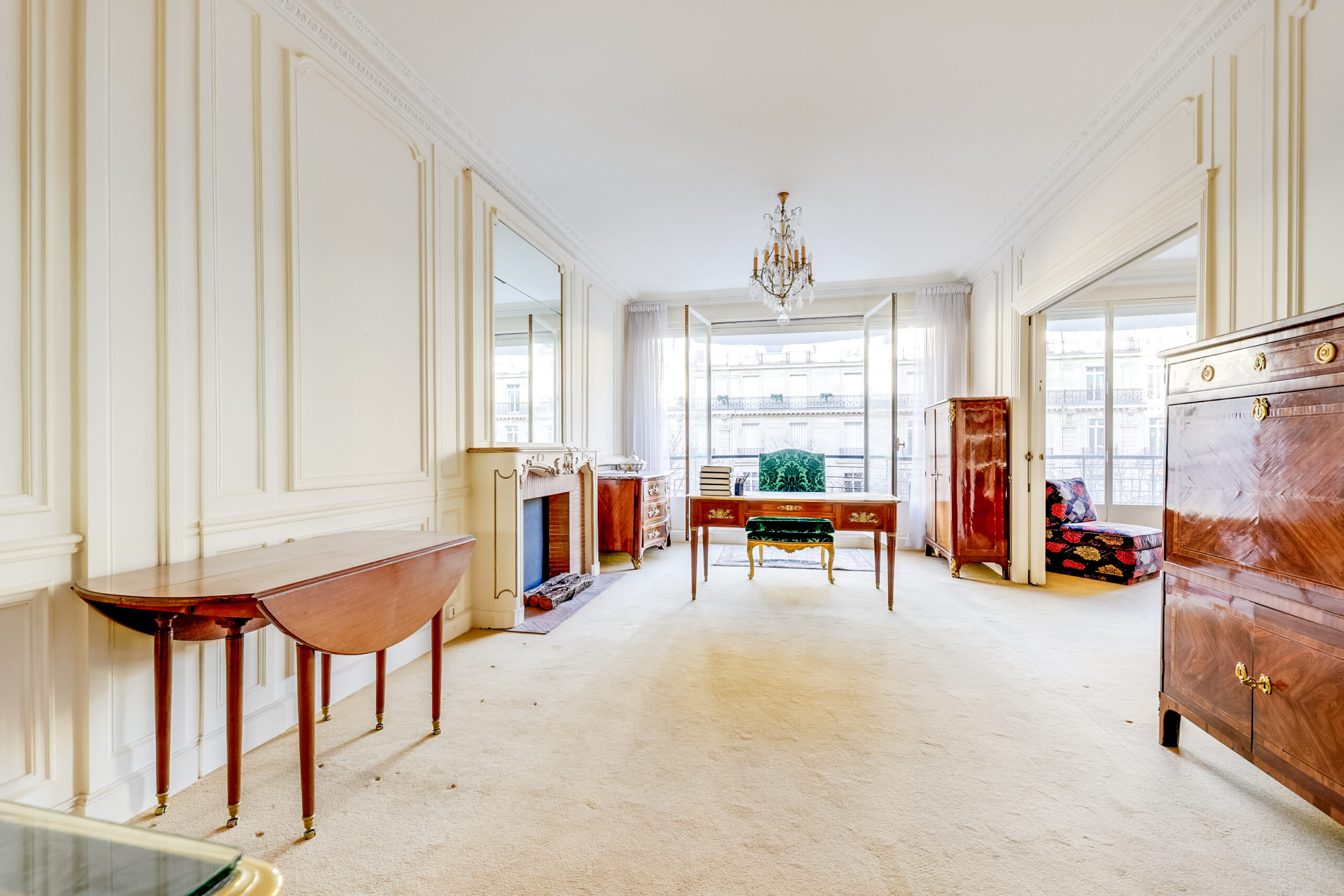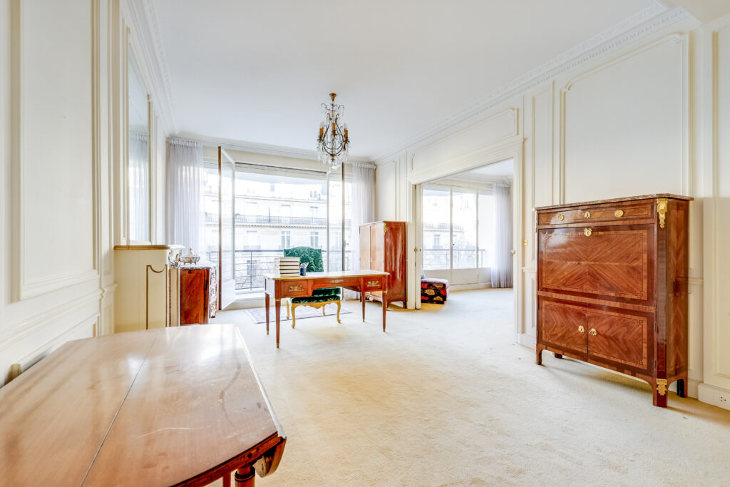 Entièrement à rénover, il dévoile un potentiel exceptionnel grâce à ses volumes généreux et à ses réceptions ouvrant sur deux vastes balcons de plain-pied, offrant une vue parfaitement dégagée et un ensoleillement continu sur l’avenue.