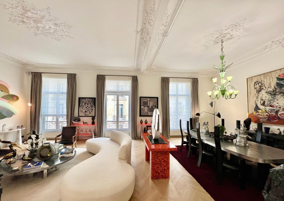 En plein cœur du Triangle d’Or, à proximité de l’avenue George V, au 2ème étage d’un très bel immeuble ancien, un appartement de 196,72m² loi carrez.