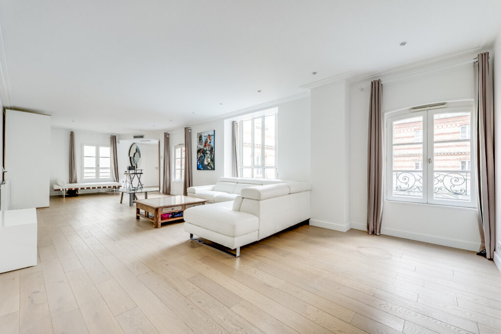 Situé aux deux derniers étages d’un immeuble de standing, ce superbe duplex d’une superficie de 155,89m² loi carrez entièrement rénové avec goût, offre un cadre de vie paisible sur cour.